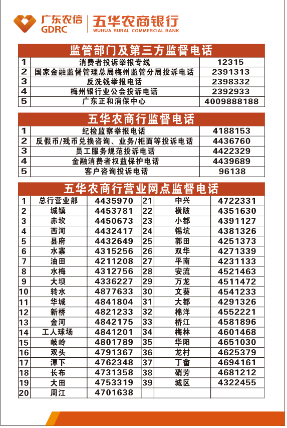 | 4 | 梅州银行业公会投诉电话 | 2392933 |